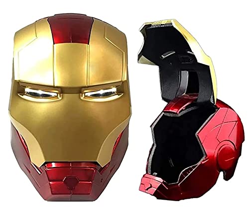 Iron Man Casco Cool Led Iron Man Maschera Replica Bambini Costume Accessorio Revenger Light Up Puntelli Regalo Cosplay Puntelli Per Halloween,Gold Red-kids(55cm)