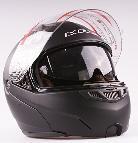 MRC - Casco da moto modulare apribile, jet/integrale con doppia visiera, colore nero opaco