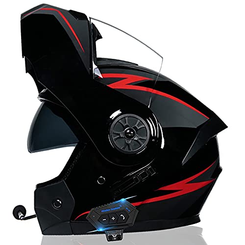 Casco Modulare da Moto Bluetooth Caschi Casco Anti-collisione Unisex Quattro Stagioni Omologato ECE Antiappannamento, Doppia tonalità, Traspirante E Confortevole 55~62CM