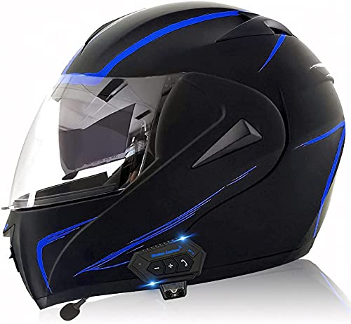 Casco moto modulare Bluetooth, con caschi modulari apribili a doppia visiera integrale per uomo e donna, protezione per la testa del casco per scooter per adulti, omologato ECE F,M