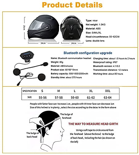 ★ Sistema Bluetooth integrato: il casco è dotato di auricolare Bluetooth, casco a doppia lente, connessione gratuita entro 10 metri, collegato direttamente al telefono cellulare per ottenere musica, chiamate e altre funzioni, la chiamata viene automaticamente risposta in 10 secondi, mani libere, facile installazione, sistema stereo di alta qualità, ti consentono di passare senza problemi tra chiamate e musica durante la guida.