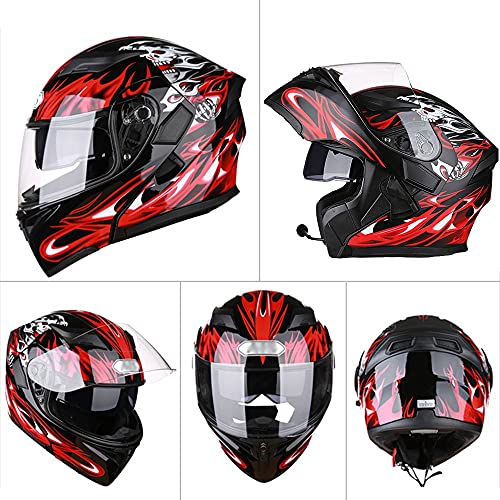 Casco Modulare Moto Bluetooth, con Microfono per Risposta Automatica Dual Visor Anti-Fog ECE/DOT Certification Casco Moto Integrale per Donna e Uomo Adulti M~XXXL
