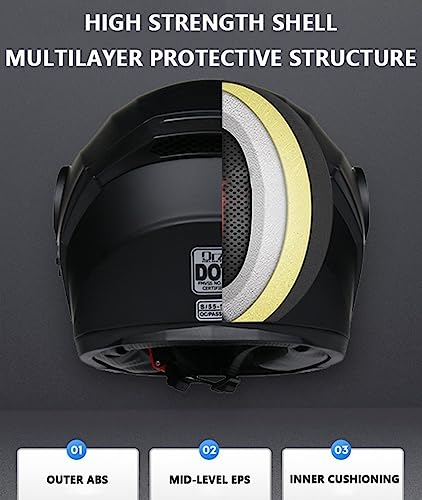 ★【Godere di una guida sicura】- Come appassionato di moto, garantire la sicurezza durante la guida è la cosa più importante. I caschi da moto professionali soddisfano i requisiti dello standard di sicurezza DOT FMVSS-218 / ECE R2205, che è la vostra garanzia per la guida Una scelta eccellente per la sicurezza di guida, in modo da poter godere del divertimento di guida in modo più sicuro.