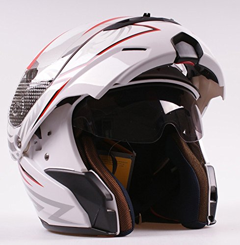 MRC, casco da moto modulare flip-up con visore doppio frontale a viso scoperto/integrale, colore bianco