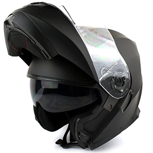 Casco Modulare JFM 600 Nero Opaco con Doppia Visiera Interna Moto e Scooter (XXL, Antracite)