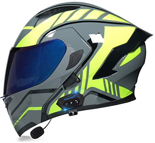 Casco moto modulare con sistema comunicazione interfono integrato Mp3 integrato Bluetooth auricolare doppio altoparlante,caschi apribili approvati DOT per uomo donna con doppia visiera B,M