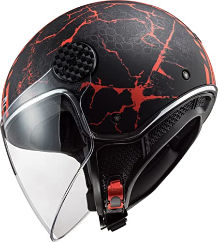 LS2 Casco Moto Jet OF558 SPHERE LUX SNAKE Unisex,Nero Opaco/Rosso,XL