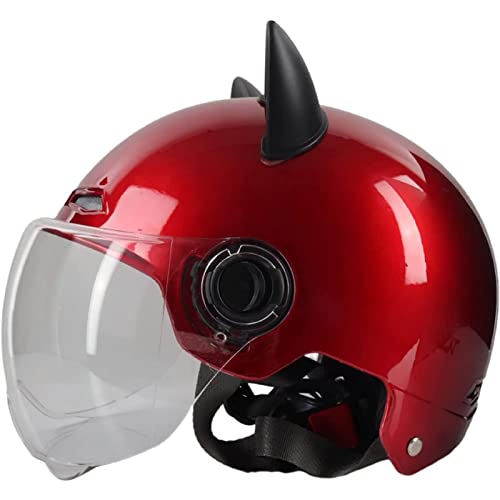 Casco da Moto con Orecchie di Gatto, Uomini e Donne Cool Simpatico Casco Mezzo con Orecchie di Gatto, Caschi da Scooter per Scooter con Visiera Approvato DOT/ECE,Rosso,One Size