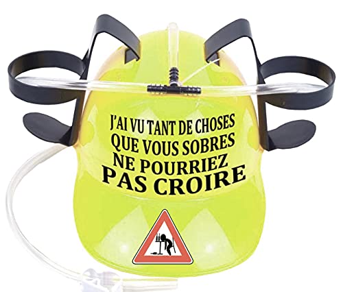 Casco Porta lattine augurale per Bere a Mani libere con scritta in francese "J'ai vu tant de choses que vous sobres ne pourriez pas croire".