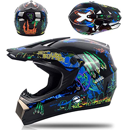 Casco da moto professionale da motocross, include occhiali, guanti e mascherina, per bambini e adulti, per moto, quad, fuoristrada, mountain bike, unisex, integrale, certificato ECE 22-05