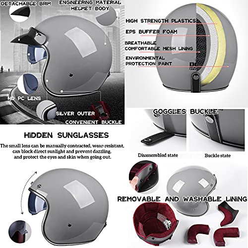 [Design vintage] - Casco moto 3/4 Open Face, ha un aspetto intrinsecamente vintage come un casco pilota negli anni '50, offre un'ottima ventilazione e un ampio campo di visibilità e si abbina bene alle tue eleganti moto da strada, adatto per touring, scooter e ciclomotori .