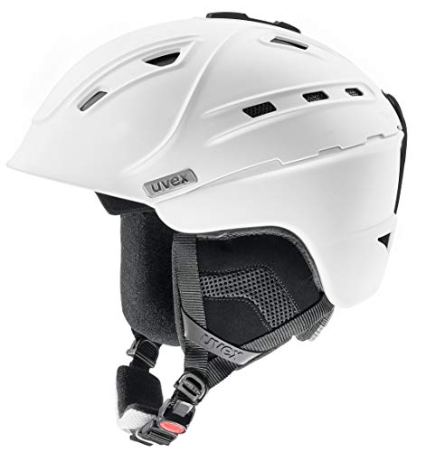 Uvex p2us, casco da sci robusto unisex, regolazione individuale delle dimensioni, aerazione ottimizzata, white matt, 55-59 cm