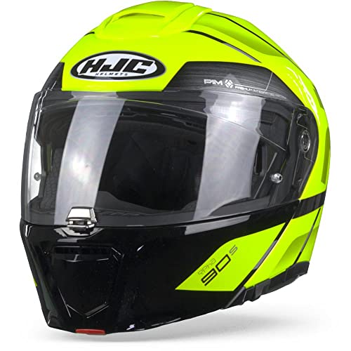 HJC ti offre il suo casco modulare RPHA 90S - BEKAVO: Sicurezza: Fibra di carbonio e vetro per un casco resistente, compatto e ultra leggero di 1450g /- 50 Chiusura del sottogola con fibbia micrometrica rinforzata in acciaio inossidabile rapida ed efficiente EPS a tripla densità per un assorbimento degli urti ottimizzato