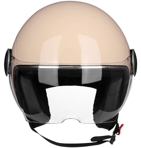 Casco Da Bici Casco Jet Casco Da Scooter, Casco Da Ciclomotore, Chopper Retro Vespa Vintage Pilot Bike Visor Helmet, All Weather, Unisex, Approvato ECE/DOT A,M56-57cm