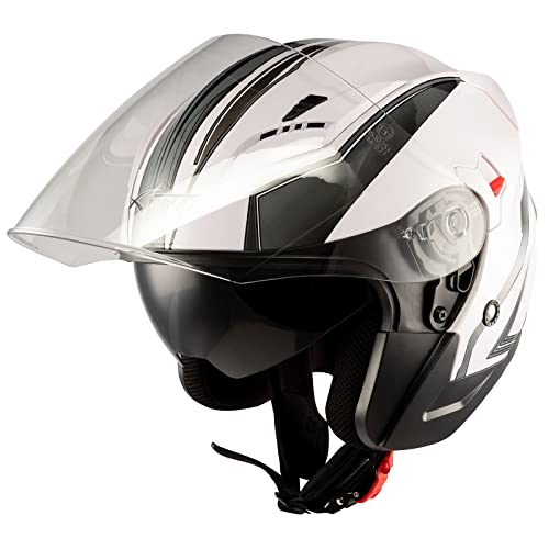 Moto Casco Jet Scooter Doppia Visiera ECE 22-06 Certificato Bianco Argento L