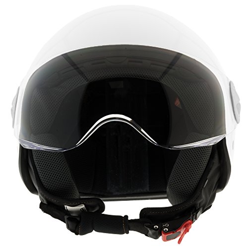 Casco Moto Scooter Motorino Moto Cross, Omologato ECE R22-05, Casco in ABS e Policarbonato con Visiera Antigraffio, (Bianco, S)
