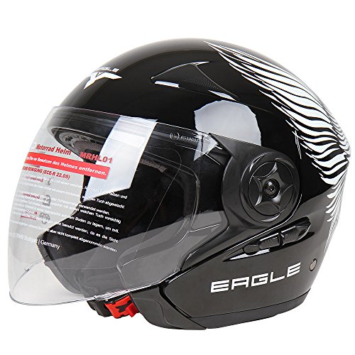 Jago Casco moto jet scooter nero con visiera parasole antigraffio 61 cm