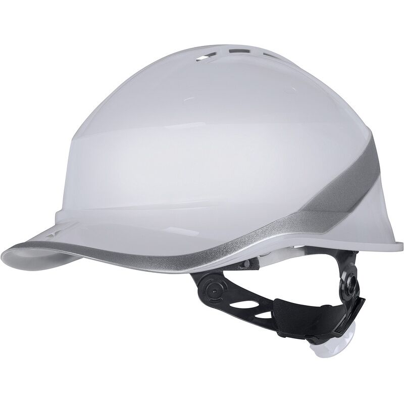 Conforme alle norme EN397:2012 +A1:2012. Archetto due posizioni: su o giù. Plastica dell'ABS. Imbracatura in tessuto con 8 punti di attacco. Casco ventilato: traspirante, confortevole tutto il giorno.