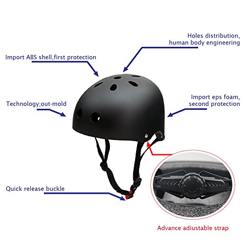 SKL - Casco di sicurezza regolabile per bambini e ragazzi, per bici, pattini e BMX, nero, M