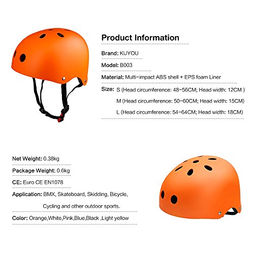 SKL - Casco di sicurezza regolabile per bambini e ragazzi, per bici, pattini e BMX, Orange, S