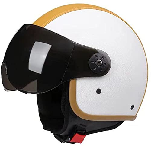 Casco unisex retro aperto viso 3/4 mezza pelle casco uomo e donna certificato ECE casco jet vintage per scooter ciclomotore casco con visiera trasparente ribaltabile C,M