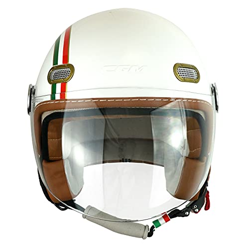 CGM Casco demi jet visiera lunga, 109I GLOBO ITALIA, Bianco Verde Rosso, S (55-56cm)