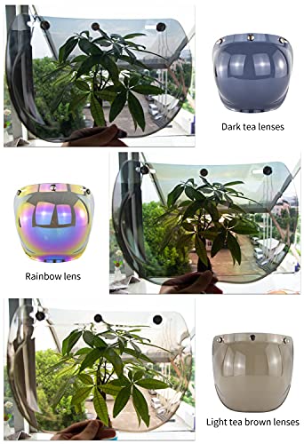 Con scudo a bolle: entrambi i lati sono fissati con uno stile a cricchetto e i 3 scatti sono intensivi, quindi non cadrà facilmente. L'adattatore flip è collegato allo schermo a bolle per aprire e chiudere. Lo scudo a bolle protegge i tuoi occhi da insetti, sabbia detritica, luce solare e vento forte.