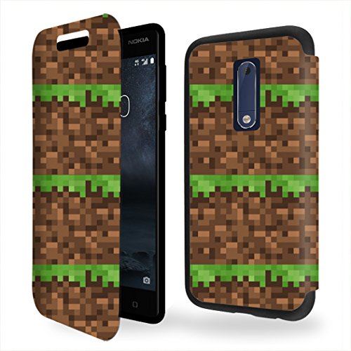 Case-Industry Construction Terrain Grass Heart Map - Jeux Collection Pattern Custodia Pelle Ultra Slim per Nokia 5 Smartphone con Stand - Flip Case Funda Cover Protettiva Nokia 5 PU Pelle Accessori