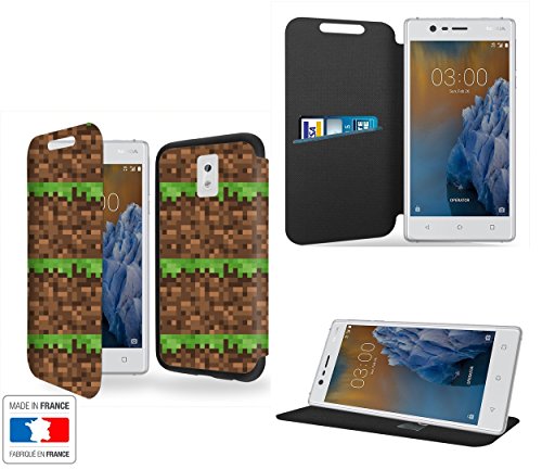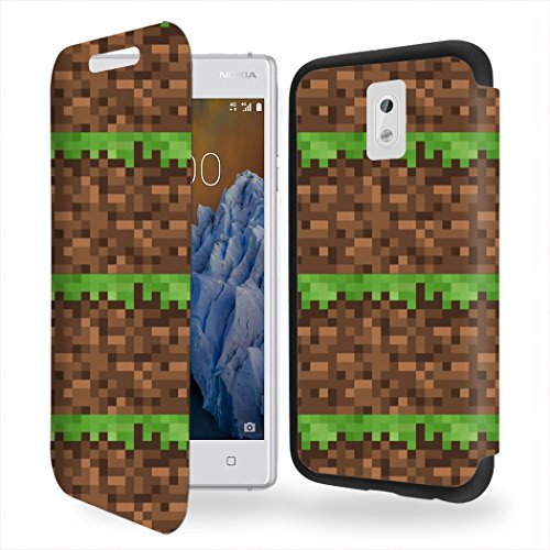 Case-Industry Construction Terrain Grass Heart Map - Jeux Collection Pattern Custodia Pelle Ultra Slim per Nokia 3 Smartphone con Stand - Flip Case Funda Cover Protettiva Nokia 3 PU Pelle Accessori