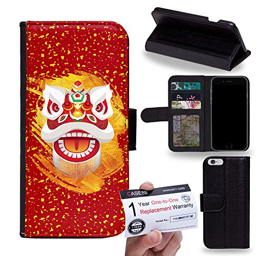 Case88 [Apple iPhone 6 / 6s Plus (5.5")] Custodia in PU Pelle, Supporto Stand e Porta Carte Integrati Portafoglio Flip Cover - Art Chinese Southern Lion The Zhang Fei Lion 2043