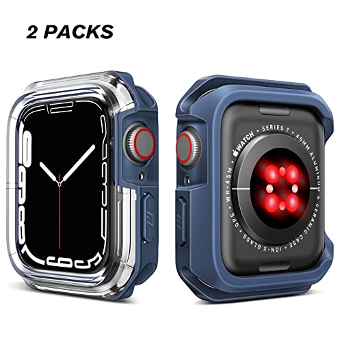 CaseBot Custodia protettiva compatibile con Apple Watch 7 45 mm, 2 pezzi, custodia protettiva antiurto per iWatch Series 7, nero e blu
