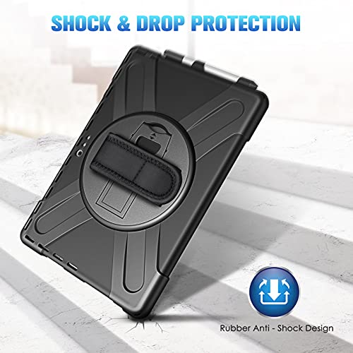 CaseBot Custodia per Surface Pro 7+ / Pro 7 / Pro 6 / Pro 5, [supporto girevole a 360°] robusta e resistente agli urti con cinghia da polso (non compatibile con Type Cover), colore: Nero