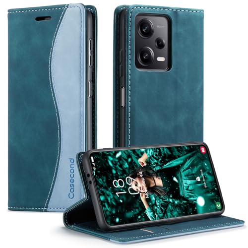 Casecond Cover per Xiaomi Redmi Note 12 Pro 5G Custodia in Pelle PU Premium Flip Caso Portafoglio Slot per Schede con Magnetica a Scatto con RFID Blocking per Donne Uomini Elegante - Blu Verde