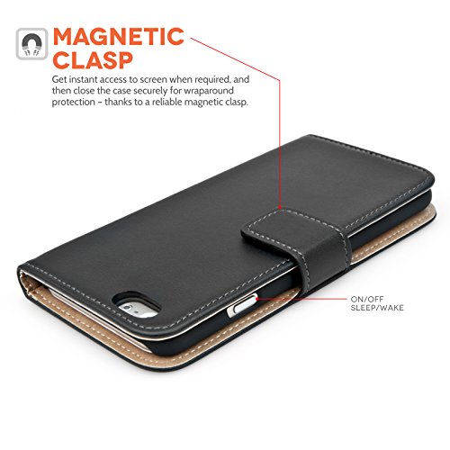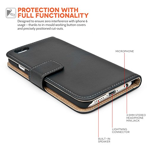 Caseflex Cover Compatibile per iPhone 6 / 6S Nero Genuino Pelle Portafoglio Custodia