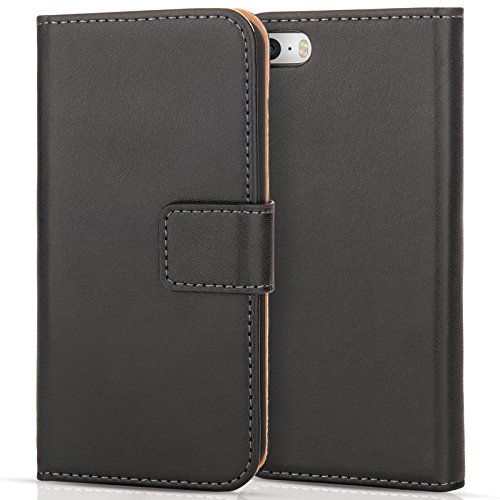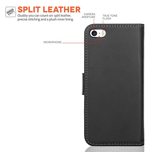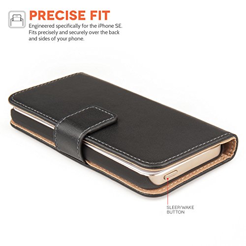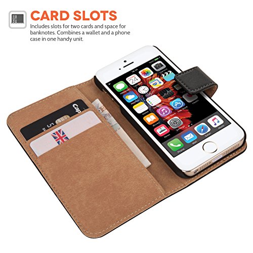 Caseflex Cover Compatibile Per iPhone SE Nero Genuino Pelle Portafoglio Custodia