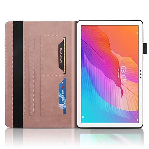 CaseFun Custodia per Huawei MatePad T10S T10 2020 Tablet Sottile PU Pelle Albero della Vita Modello Flip Portafoglio Custodia Cover Antiscivolo con portamatite, Huawei MatePad T 10S / T 10 Rosegold