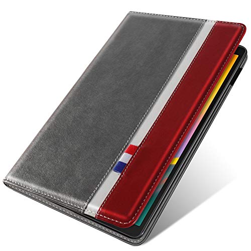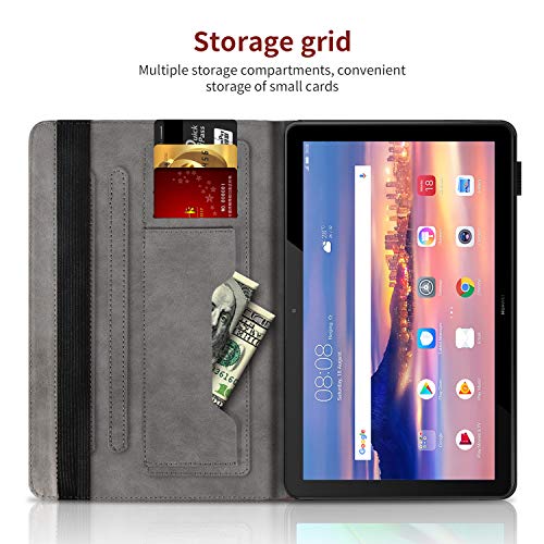 CaseFun Custodia per Huawei Mediapad T5 10 Slim Case Magnetico Leggero Supporto Protettiva Tablet in Silicone PU Pelle Stand Flip Cover, Grigio+Rosso