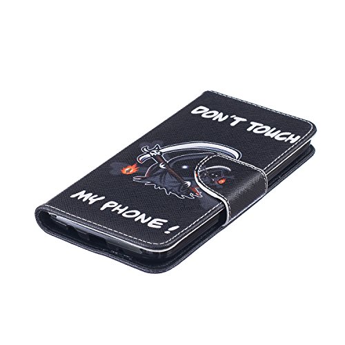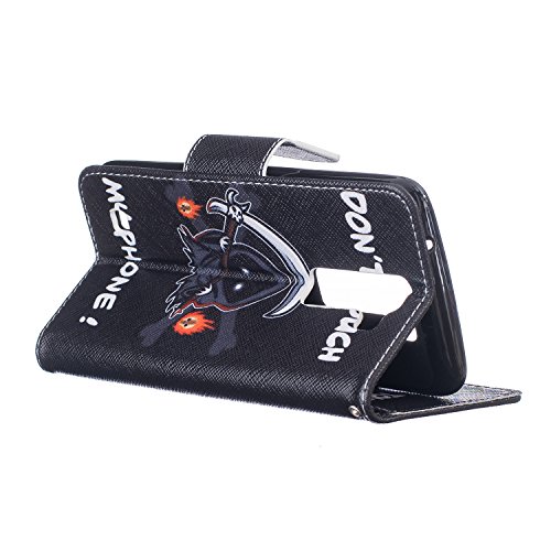 CaseHome Compatible for LG K8 PU Cuoio Caso Custodie Stile del Libro Folio Flip Magnetico Chiusura Portafoglio Progettazione Copertura Protettiva della Pelle Shell-Grim (Non Touch My Phone)