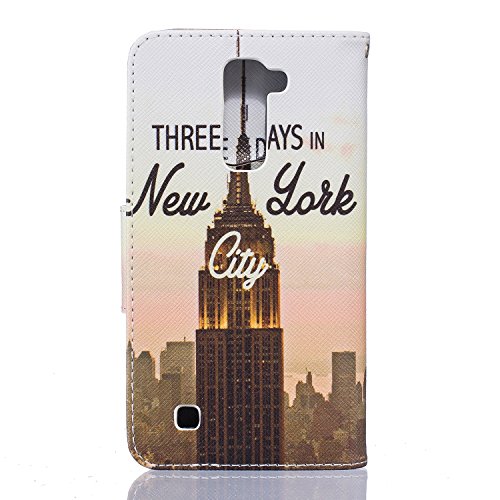 CaseHome Compatible for LG K10 PU Cuoio Caso Custodie Stile del Libro Folio Flip Magnetico Chiusura Portafoglio Progettazione Copertura Protettiva della Pelle Shell-Empire State Building