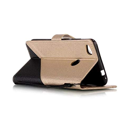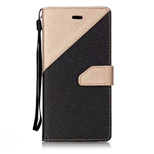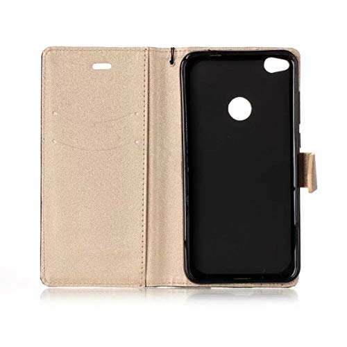 CaseHome Compatible for Huawei P8 Lite 2017 Astuccio Portafoglio Progettare con Slot per Schede Foglio Flip Magnetico Chiusura Stand Caratteristica Full Body Protettivo PU Pelle Caso-Nero e Oro