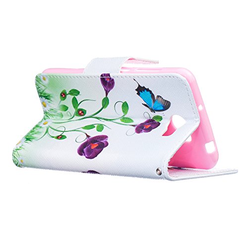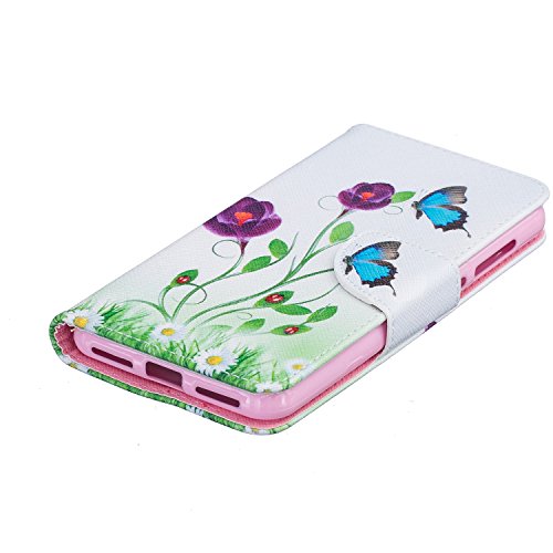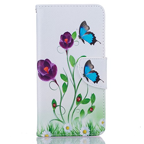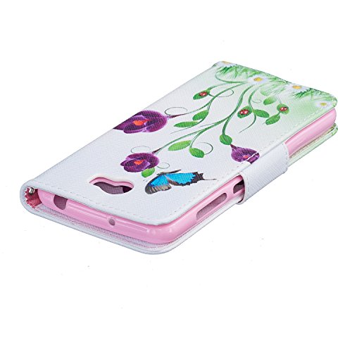 CaseHome Compatible for Huawei Y5 II PU Cuoio Caso Custodie Stile del Libro Folio Flip Magnetico Chiusura Portafoglio Progettazione Copertura Protettiva della Pelle Shell-Blu Farfalle e Fiori Viola
