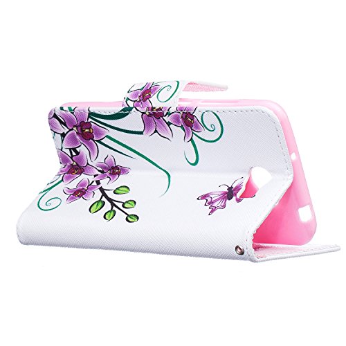 CaseHome Compatible for Huawei Y5 II PU Cuoio Caso Custodie Stile del Libro Folio Flip Magnetico Chiusura Portafoglio Progettazione Copertura Protettiva della Pelle Shell-Viola dei Fiori di Farfalle