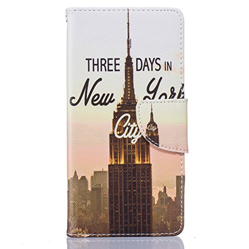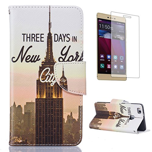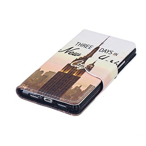 CaseHome Compatible for Huawei P9 Lite PU Cuoio Caso Custodie Stile del Libro Folio Flip Magnetico Chiusura Portafoglio Progettazione Copertura Protettiva della Pelle Shell-Empire State Building