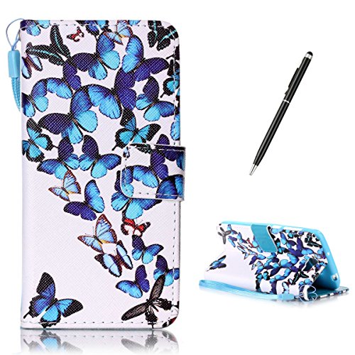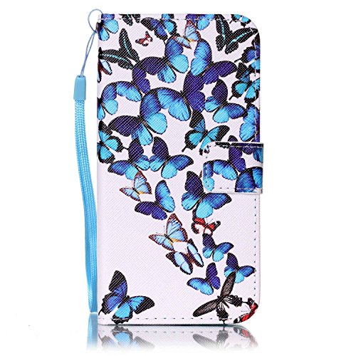 CaseHome Compatible for Huawei Y5 II Caso Custodie Cuoio Magnetica Flip Portafoglio Progettare Case Cover Protettivo dell'ente Completo Absorber Pelle Shell-Farfalle Blu