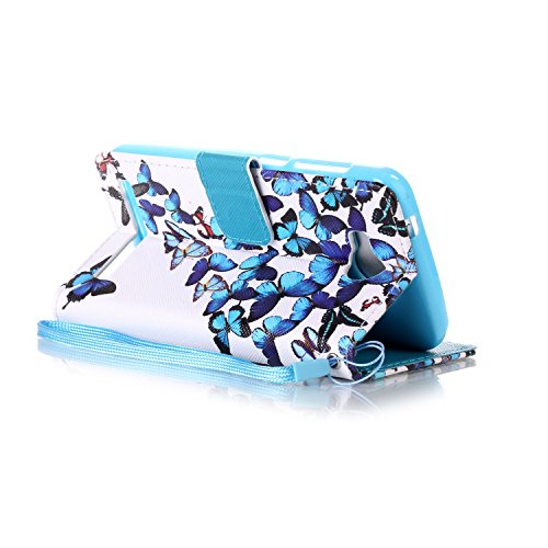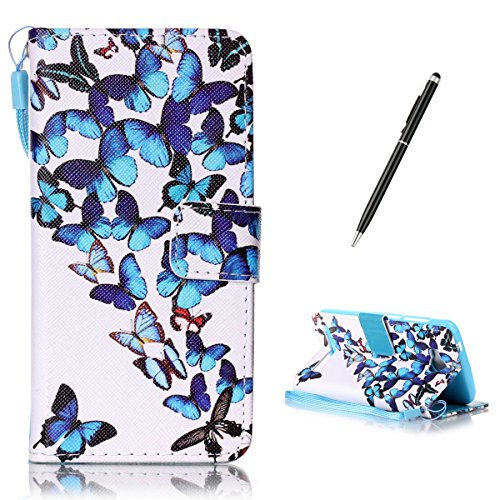 CaseHome Compatible for Huawei Y3 II Caso Custodie Cuoio Magnetica Flip Portafoglio Progettare Case Cover Protettivo dell'ente Completo Absorber Pelle Shell-Farfalle Blu