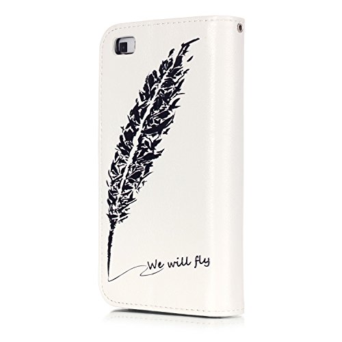 CaseHome Compatible for Huawei P8 Lite Caso Custodie Portafoglio Stile del Libro del Foglio di Vibrazione di Chiusura Magnetica Stand Custodia in Pelle Protettiva Shell-del Nero della Piuma