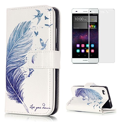 CaseHome Compatible for Huawei P8 Lite Caso Custodie Progettare Portafoglio Stile del Libro del Foglio di Vibrazione di Chiusura Magnetica Stand Custodia in Pelle Protettiva Shell-Blue Birds Feather