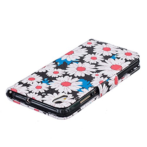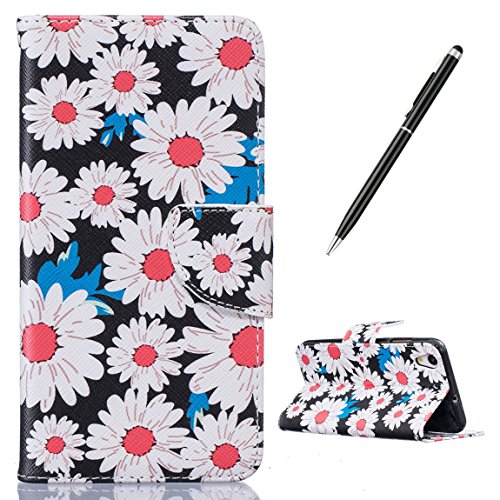 CaseHome Compatible for Huawei Honor 5A/HAWEI Y6 II PU Cuoio Caso Custodie Stile del Libro Folio Flip Magnetico Portafoglio Progettazione Copertura Protettiva della Pelle Shell-Margherita Bianca