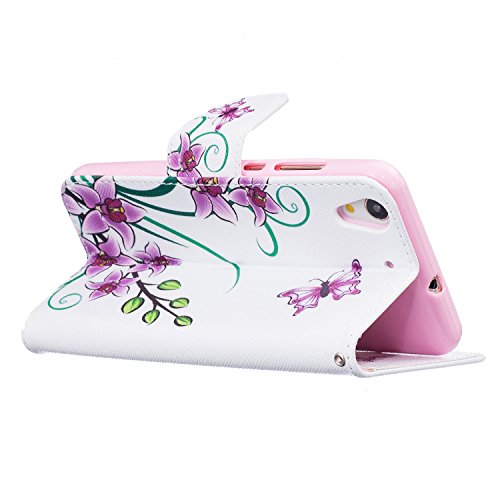 CaseHome Compatible for Huawei Honor 5A/HAWEI Y6 II PU Cuoio Caso Custodie Stile del Libro Folio Flip Magnetico Portafoglio Progettazione Protettiva della Pelle Shell-Viola dei Fiori di Farfalle