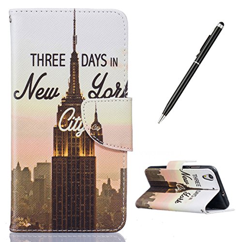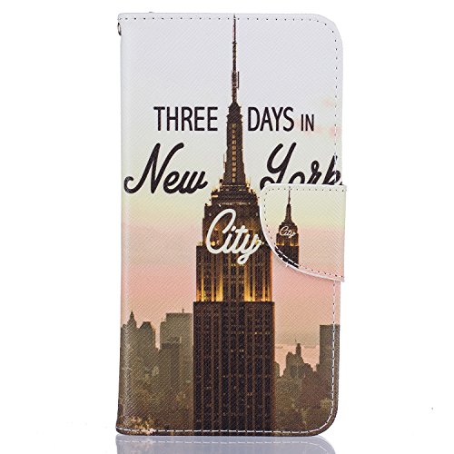 CaseHome Compatible for Huawei Honor 5A/HAWEI Y6 II PU Cuoio Caso Custodie Stile del Libro Folio Flip Magnetico Portafoglio Progettazione Copertura Protettiva della Pelle Shell-Empire State Building